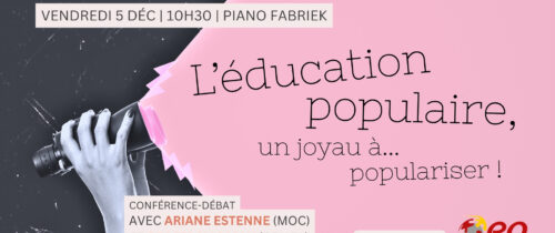 L’éducation populaire, qu’on appelle éducation permanente en Belgique, peu de gens connaissent. Pourtant, c’est un trésor inestimable, qui permet d’enraciner la démocratie en profondeur, qui permet aux gens de transformer la société à partir de leurs réalités et de leurs analyses, qui donne au monde associatif un horizon et des méthodes solides.