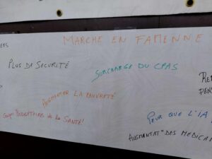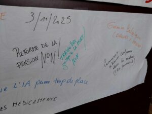 Notre joyeuse militante Danielle n’a pas été une oreille de trop lorsque chacune et chacun ont déplié leurs dégoûts, leurs colères, leurs incompréhensions.