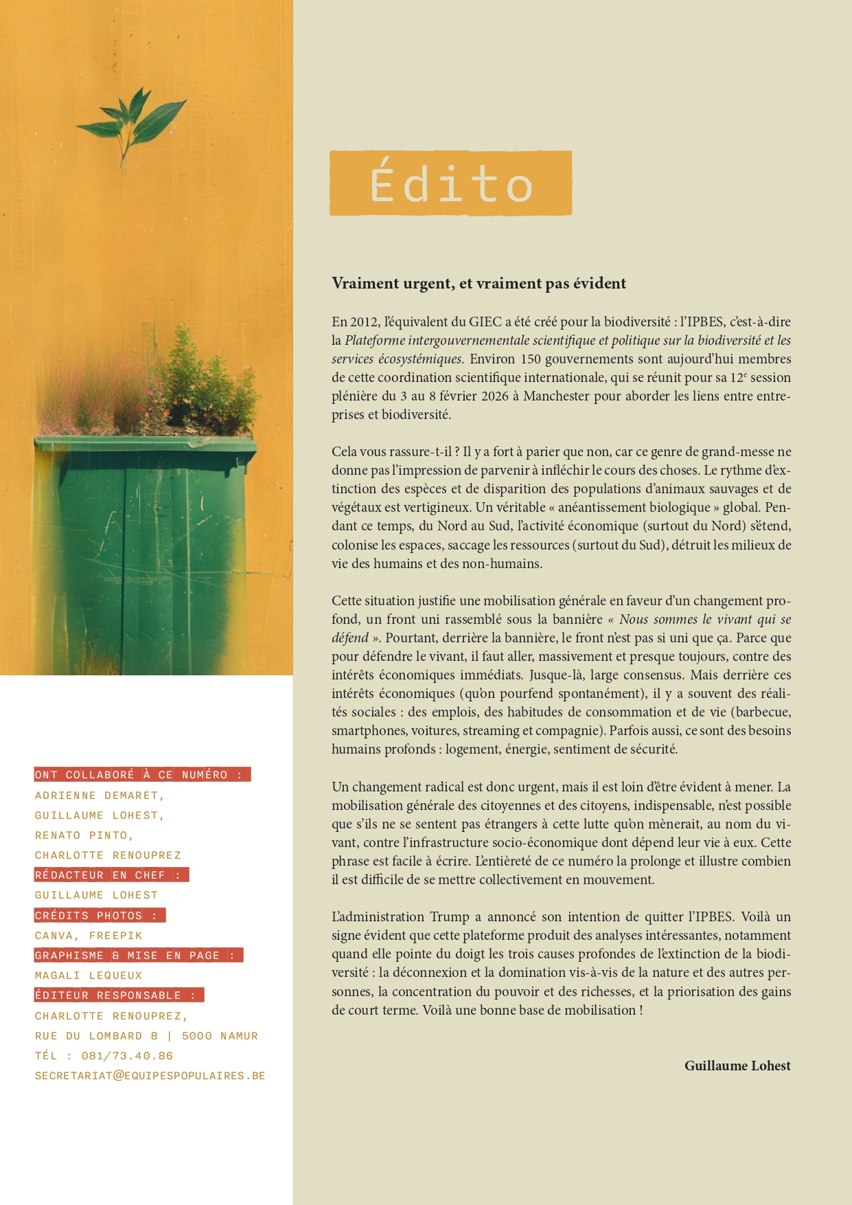 Protéger la biodiversité : Urgent et pas évident (Contrastes janvier-février 2026)